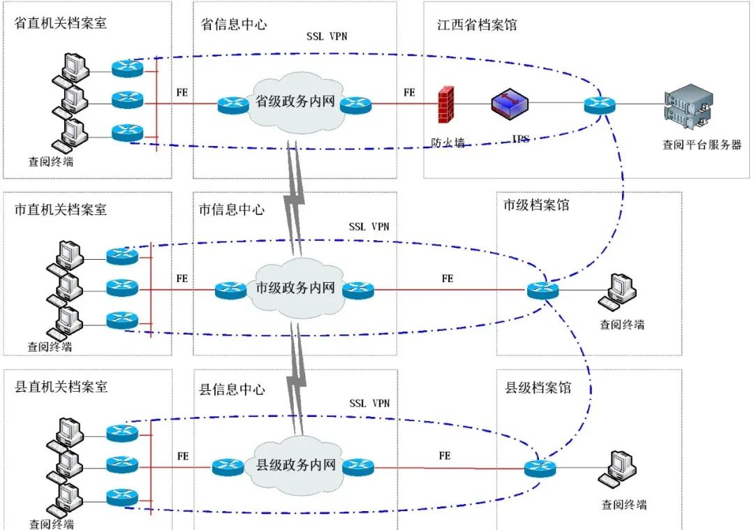 江西檔案共享利用平臺專網(wǎng)布置