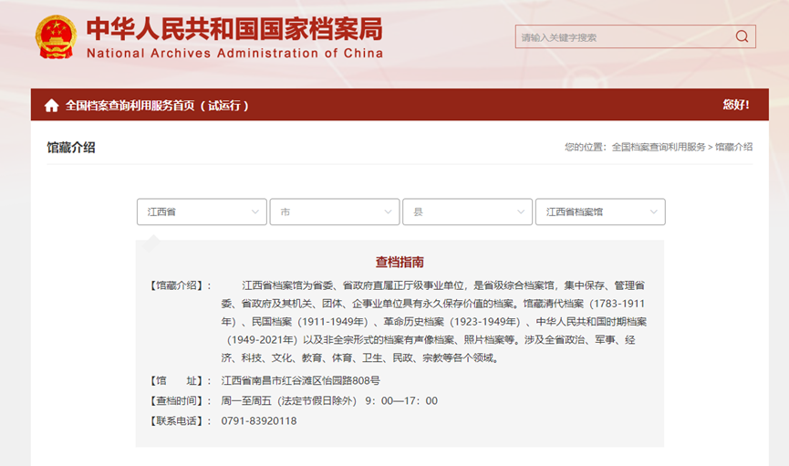 江西檔案共享利用平臺的建設始于2012年,本平臺的建設是為了聯(lián)通各級國家綜合檔案館及其同級立檔單位,并將省檔案館檔案資料查閱平臺部署其上,供各市、縣檔案局(館)使用,實現(xiàn)了數(shù)字檔案資源的異地備份和集中共享,開展館際之間、館室之間的查檔指引服務。目前已開通江西省全部11個設區(qū)市、44個縣級檔案館以及21家省直機關連通并登錄查閱平臺,支撐起了全省省、市、縣三級綜合檔案館的基本業(yè)務,可實現(xiàn)各門類檔案數(shù)字資源的收、管、存、用和遠程出證。截止目前該平臺共存儲備份了三級綜合檔案館目錄數(shù)據(jù)4004萬條、紙質(zhì)檔案數(shù)字副本3180余萬件。目前本平臺已實現(xiàn)與“贛服通”的對接,并可向電子證照系統(tǒng)推送檔案證明件。2022年,本平臺高分通過了國家檔案局組織的“全國示范數(shù)字檔案館”系統(tǒng)測試,成為了全國第5家通過測試的省級國家綜合檔案館。
