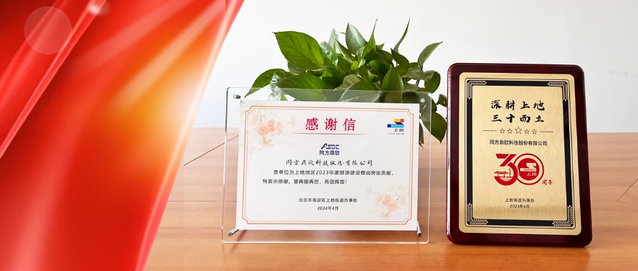 2024年4月30日上午,同方鼎欣受邀出席了上地街道舉辦的2024年第一季度財源建設工作聯席會,并獲頒“深耕上地 三十而立——30周年”榮譽獎牌及“財源建設工作突出貢獻企業感謝信”表彰。