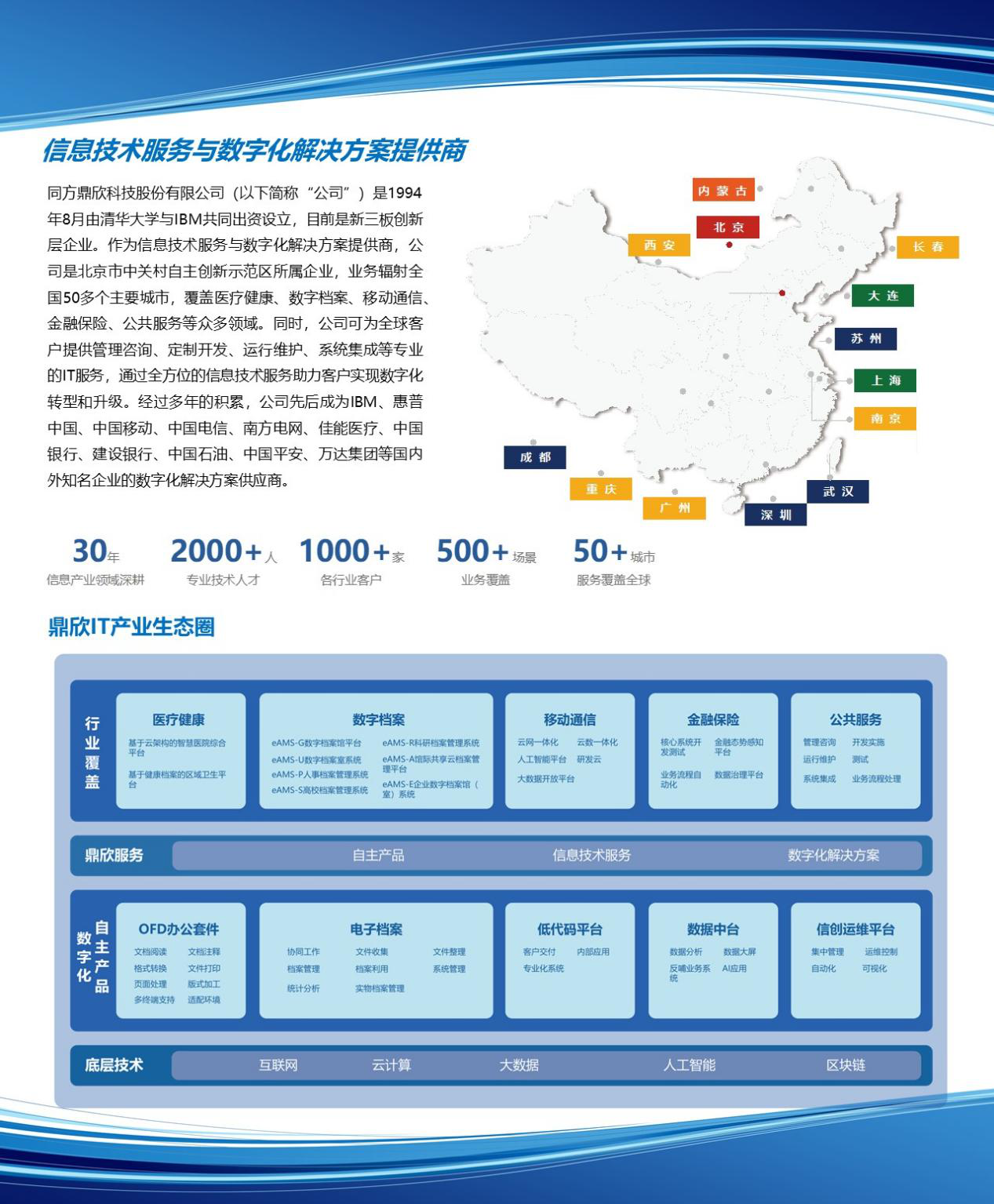 作為在信息產業領域沉浸多年的信息技術服務與數字化解決方案提供商,同方鼎欣已在信息產業領域布局30年,通過多年積累和發展,公司業務已輻射全國50多個主要城市,擁有豐富的行業積累、良好的商業口碑、深厚的開發服務經驗、出色的項目實施方案和優秀的技術團隊。多年來,公司始終堅持把“技術創新”和“人才管理”作為在行業中突圍的核心競爭力和前行驅動力。依靠強大的研發能力、精耕細作的定制化服務體系在業內樹立了良好的口碑和品牌效應,可為全球客戶提供管理咨詢、定制開發、運行維護、系統集成等專業的IT服務,通過全方位的信息技術服務助力客戶實現數字化轉型和升級。