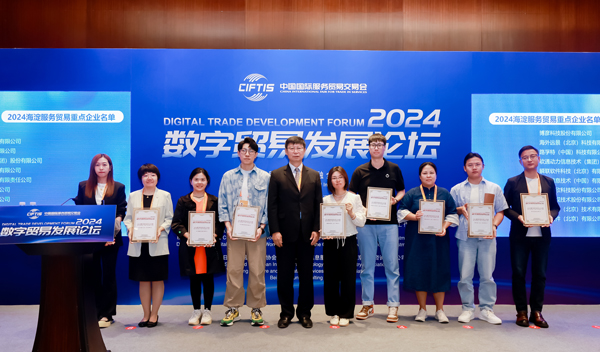 論壇期間,發布了由中國國際投資促進會指導,北京和君咨詢有限公司、北京市海淀服務貿易和服務外包企業協會及相關行業機構共同發起的“2024海淀服務貿易重點企業”推介名單。作為北京市中關村自主創新示范區所屬企業,同方鼎欣憑借在數字貿易領域多年服務經驗、創新的數字化服務能力和優質的服務品質,再度獲評入選“2024海淀區服務貿易重點企業”推介名單。