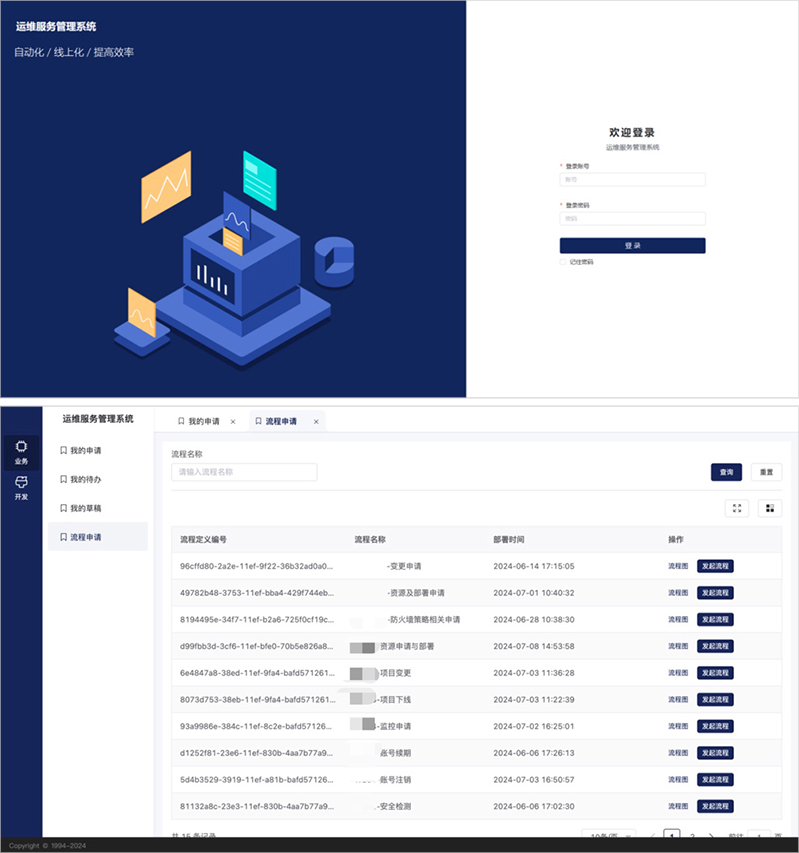 開發(fā)項目歷經(jīng)8個月,通過需求設(shè)計、系統(tǒng)設(shè)計、系統(tǒng)開發(fā)、系統(tǒng)對接、系統(tǒng)聯(lián)調(diào)、系統(tǒng)測試、系統(tǒng)部署等多個階段,系統(tǒng)于2024年5月起進行內(nèi)部試運行,至2024年8月全面完成了運維IT服務(wù)管理系統(tǒng)(ITSM)的業(yè)務(wù)功能研制、上線、培訓(xùn)等工作,成功上線試運行,并同步開展產(chǎn)品優(yōu)化工作。在試運行階段,從統(tǒng)一運維平臺成功同步激活用戶863名,從OA系統(tǒng)遷移優(yōu)化流程28個。截至11月,用戶已發(fā)起1650個運維業(yè)務(wù)流程。系統(tǒng)在實際操作中得到了有效應(yīng)用,提升了運維工作的效率與規(guī)范性。截至目前,鼎欣科技服務(wù)團隊已全部完成軟件系統(tǒng)需求建設(shè)方案要求,建成系統(tǒng)可將審批執(zhí)行完成的流程自動推送到CMDB系統(tǒng),實現(xiàn)數(shù)據(jù)自動化同步及數(shù)據(jù)統(tǒng)一。該項目具備線上流程化、標準化的管理方式,全面改善了運維管理工作,實現(xiàn)了運維管理的高效化、規(guī)范化,滿足了業(yè)務(wù)規(guī)模增長需要,全面提高了客戶IT服務(wù)的質(zhì)量和效率。