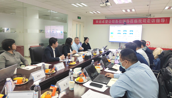 會議伊始,公司董事長郭明星首先致辭對卓望公司各位領導一行蒞臨到訪表示熱烈歡迎,并對公司基本情況及三十年發展歷程做了簡要介紹。公司總經理江威向卓望公司一行介紹了鼎欣科技整體服務能力,他表示作為中國領先的信息技術服務與數字化解決方案提供商,鼎欣科技深耕信息產業領域30年,公司積累了大量的資質、榮譽,通過多年的積累與發展,公司已成為擁有全面的產品研發和技術創新能力的高新技術企業。同時,公司在國產信創領域持續投入研發力量,通過與人工智能、物聯網、大數據等技術的深度融合,陸續推出了一系列具有自主知識產權及品牌的信創產品,可為各行業客戶提供更高效、更穩定、更安全的產品和解決方案,并對鼎欣科技的信息技術服務能力和企業管理體系做了詳細的介紹。隨后,公司交付總監黃帥基于雙方目前的合作成果,針對卓望公司的需求,在現有合作業務的基礎上對雙方未來在技術研發、品質保障、交付優化等多個方面的合作前景與業務趨勢做了詳細的介紹。