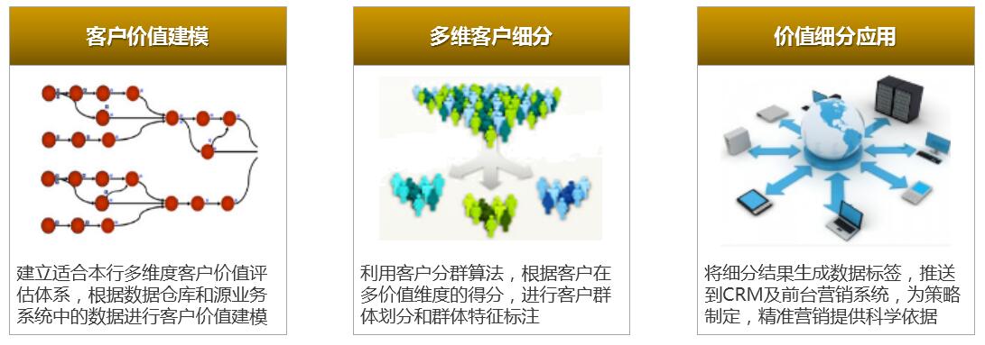 客戶是一個可能根據(jù)服務(wù)、利率、優(yōu)惠條件等因素而不斷流動的團體。我們通過評估客戶價值,并利用大數(shù)據(jù)技術(shù),引入外部數(shù)據(jù),對客戶進行戰(zhàn)略與戰(zhàn)術(shù)細分,從而為制定細化的客群策略和具體的產(chǎn)品、服務(wù)、渠道策略提供科學(xué)依據(jù)。